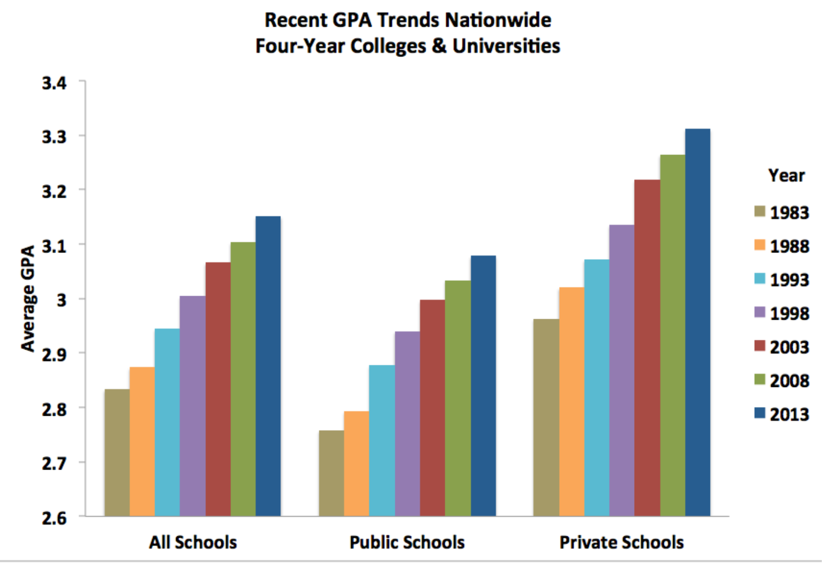As grades spike, it becomes harder and harder for schools to differentiate students’ academic success. While colleges and universities have transitioned to a more holistic admissions process that factors in test scores, extracurriculars, essays, and letters of recommendation, grades remain a significant factor in determining a student’s admissions outcome. Additionally, academic rankings and awards become increasingly competitive as more students earn high GPAs. For many state schools in America, admission into the honors college or the level of scholarship received is highly, if not solely, dependent on the applicant’s GPA. As average GPAs skyrocket, the difference between receiving a scholarship and not can be the difference between an A and an A-.